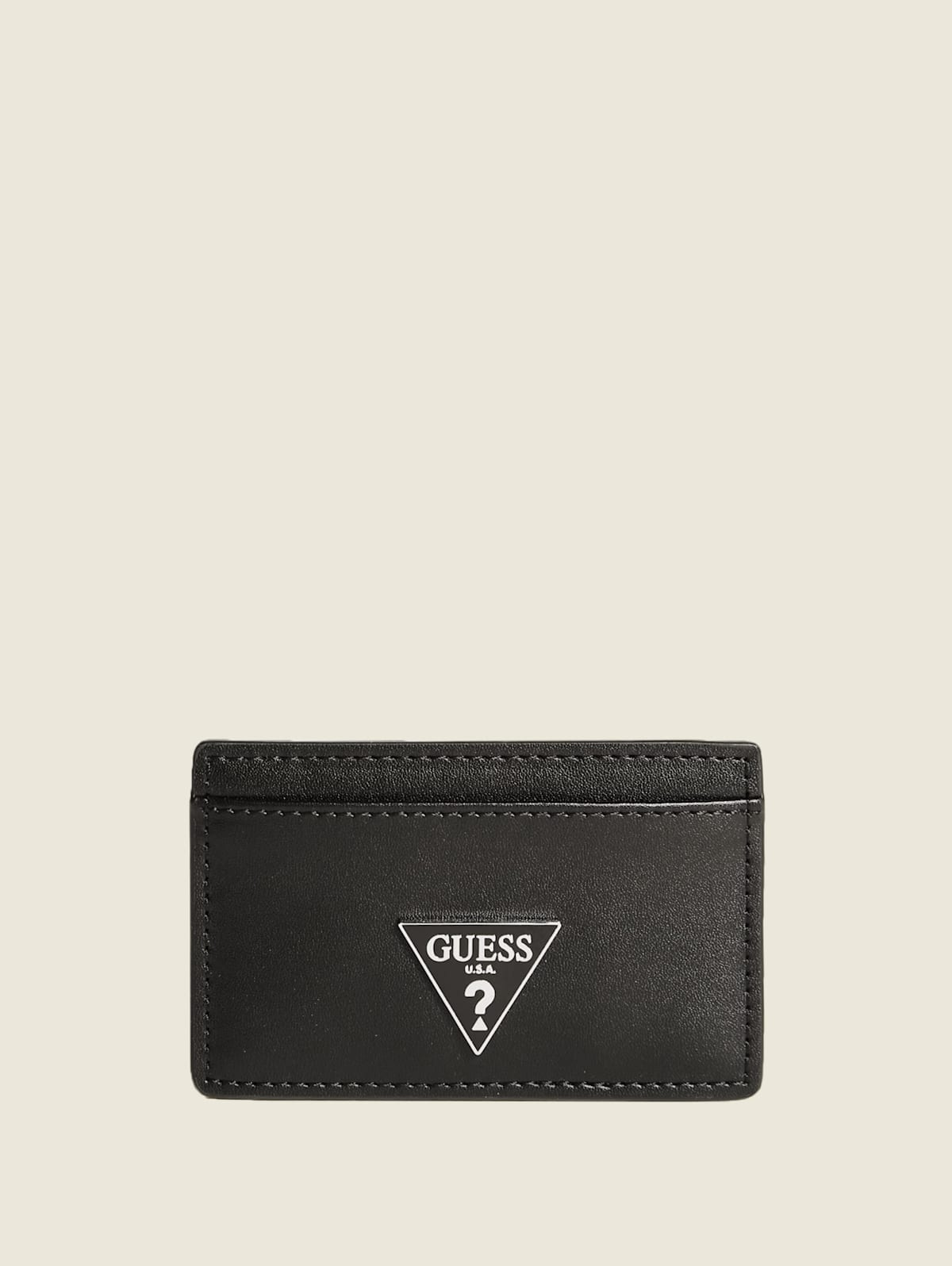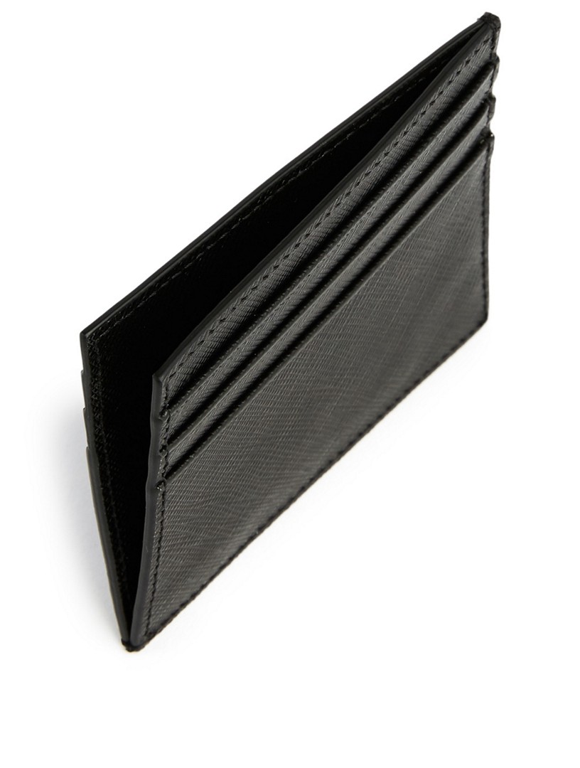 Saffiano leather card holder in black. Saffiano leather card holder. Womens Logo Plaque Card Holder.